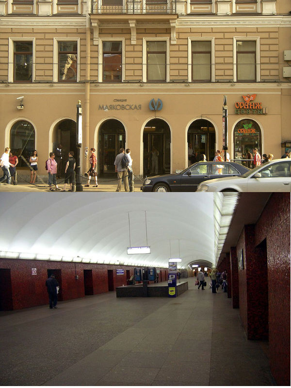 Метро Маяковское в Санкт-Петербурге Невско-Василеостровской линии находится на территории муниципального округа Владимирский Центрального района города. Станция является узловой, имеются переходы на станцию метро «Площадь Восстания» Кировско-Выборгской линии и железнодорожной станции «Московский