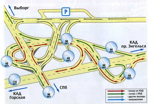 Развязка состоит из двух уровней, ее профиль является усложненным. Любые въезды, а также выезды с данного участка объединены одним путепроводом, что влияет на необходимость водителей занимать заранее необходимый ряд, чтобы не оказаться на другой дороге. Транспортные потоки, существующие на дороге