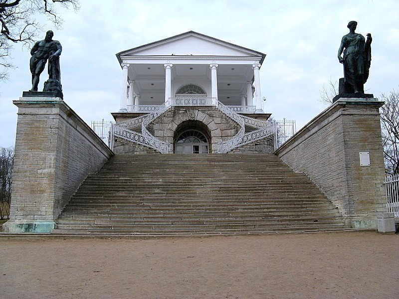 Камеронова Галерея в Пушкине – сооружение, предназначенное для прогулок и философских бесед по задумке императрицы Екатерины II, расположено на границе регулярной и пейзажной частей Екатерининского парка.